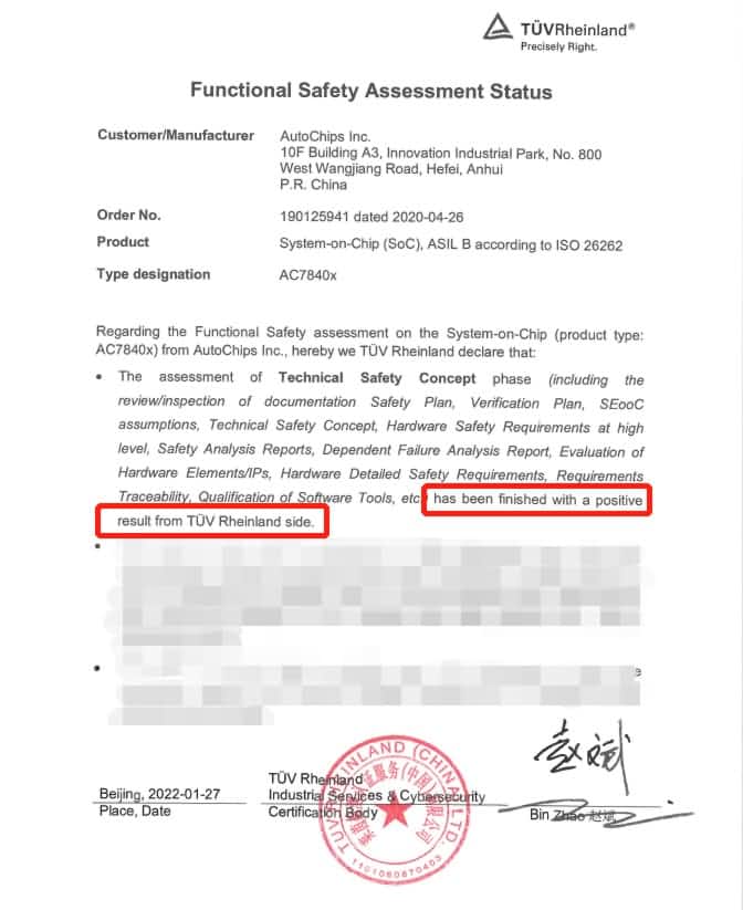 2020年,,,,,杰发科技已提前为下一代功效清静MCU做了完善的安排,,,,,凭证ISO 26262:2018标准要求,,,,,建设起完善的切合汽车功效清静最高品级的产品开发流程系统,,,,,建设了履历富厚的功效清静认证团队。。。。。现在,,,,,杰发科技已完乐成能清静阶段性评估,,,,,产品功效认证正在举行中。。。。。